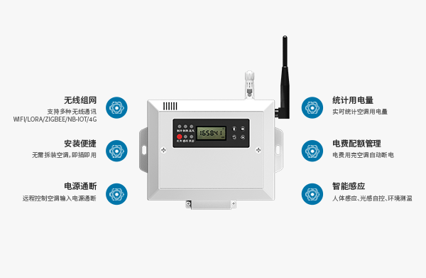 電源通斷 LCD數顯 溫度探測 光感探測 人體探測 電量計量 空調計費